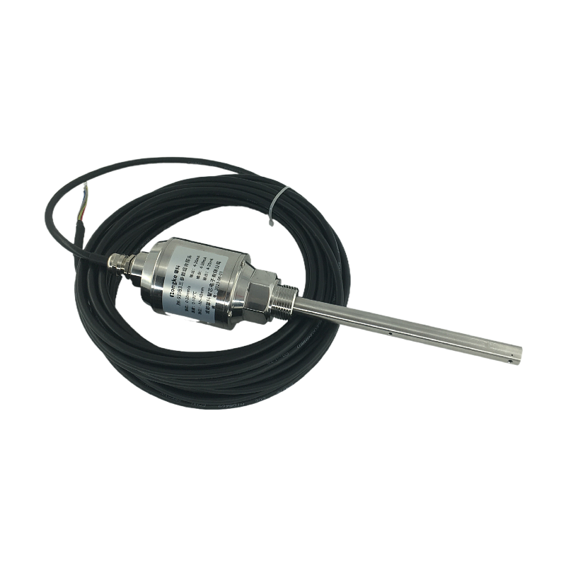 探头温度测量使用铂电阻传感器和半导体集成器件;油位测量采用了电容式传感原理;用于振动测量的传感器,直接获取机械振动的加速度信号,经放大器、带通滤波器、一次积分、真有效值(RMS)变换器,将有效带宽内的振动波形进行真有效值转换;最终油位、温度、振动各产生4~20mA输出。
